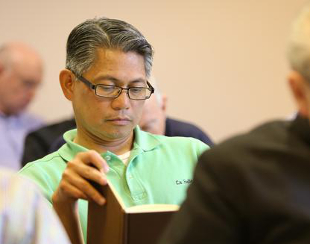 The format includes two meditations by a priest, personal time for spiritual reading, benediction and a short talk by a lay person. A priest is available for the Sacrament of Reconciliation.